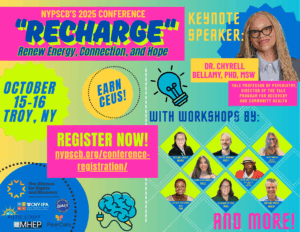 The New York State Certification Board (NYSCB) is proud to announce our Annual Conference on October 15-16, 2025 in Troy, New York. This year’s theme, “RECHARGED,” is a call to renew, reflect, and reinvigorate our peer support community as we navigate current challenges and look toward a more inclusive, empowered future.